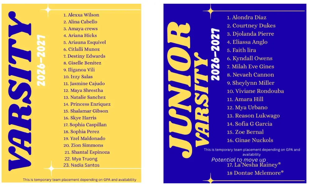 Here is the Morse JV and Varsity Cheer team for the 2026-2027 school year! Congratulations to everyone who made the team!