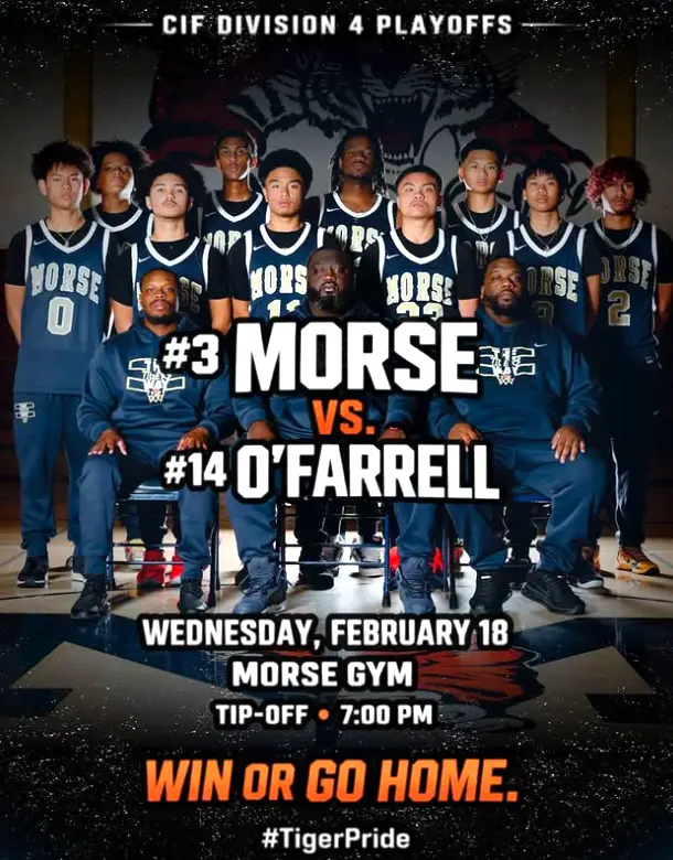 Great morning skyline community please come out and support your Morse tigers as we take on O’Farrell Falcons Wednesday @7pm FIRST HOME PLAYOFF GAME SINCE 2019-2020 season !!!! #battleofskyline