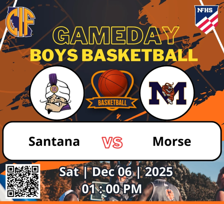 Boys Basketball @ HOME Dec 6 Posted December 6, 2025 Varsity Boys Basketball 🏀 Santana 🆚 Morse 📆. Sat., Dec. 6, 2025 ⏰. @ 01 : 00 PM