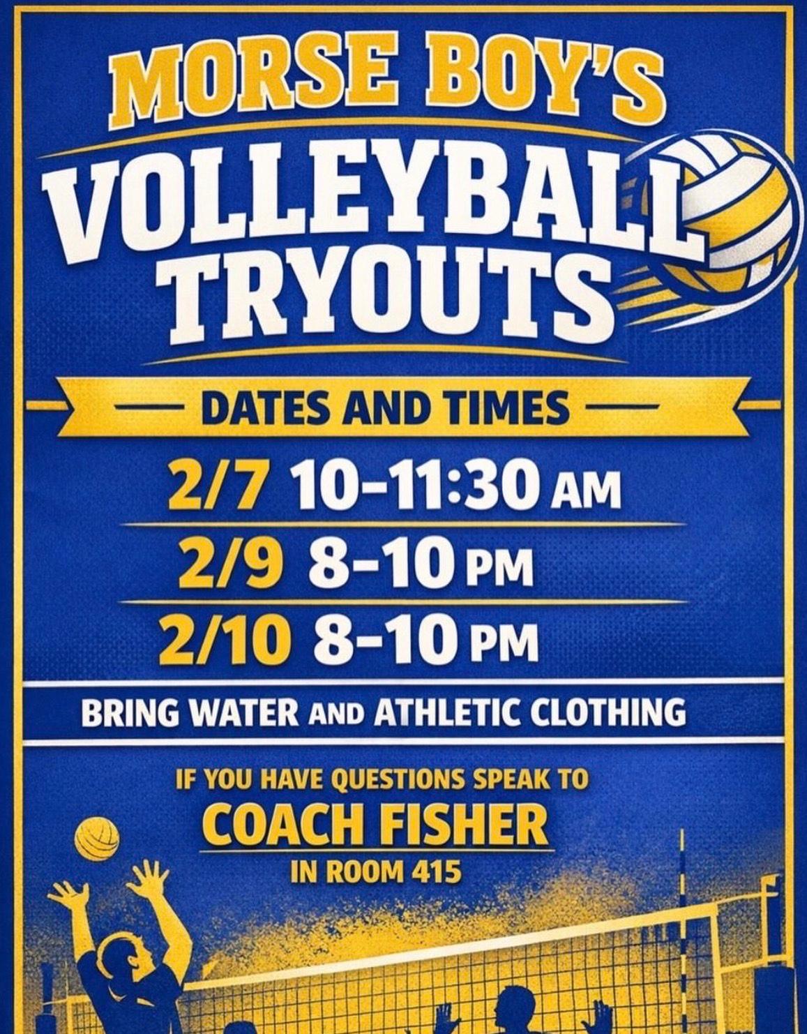 Boys Volleyball Tryouts Feb 7, 9, 10
