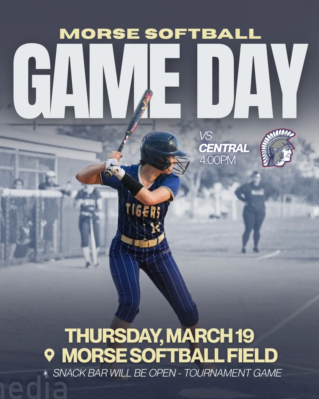HOME GAME! COME OUT & SUPPORT OUR TIGERS @ 4:00PM ON THURSDAY MARCH 19 VS CENTRAL! OUR SNACK BAR WILL BE OPEN!